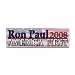 Ron Paul 2008 America First BumperStickerFrom the Designer Tell the world how you feel! Our bumper stickers are perfect for expressing yourself while cruising down the highway or just for posting on the wall.