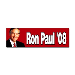 Ron Paul President '08 Bumper StickerFrom the Designer Tell the world how you feel! Our bumper stickers are perfect for expressing yourself while cruising down the highway or just for posting on the wall.
