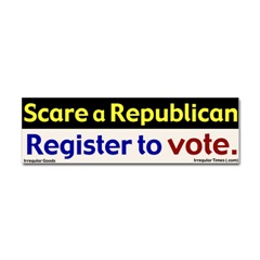 Scare a Republican - Vote Bumper StickerFrom the Designer Tell the world how you feel! Our bumper stickers are perfect for expressing yourself while cruising down the highway or just for posting on the wall.