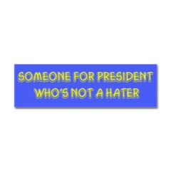 Someone For President Who's Not A HaterFrom the Designer Tell the world how you feel! Our bumper stickers are perfect for expressing yourself while cruising down the highway or just for posting on the wall.