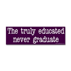 The truly educated never graduateFrom the Designer Tell the world how you feel! Our bumper stickers are perfect for expressing yourself while cruising down the highway or just for posting on the wall.