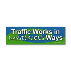 Traffic Works in Mysterious Ways bumper stickerFrom the Designer Tell the world how you feel! Our bumper stickers are perfect for expressing yourself while cruising down the highway or just for posting on the wall.
