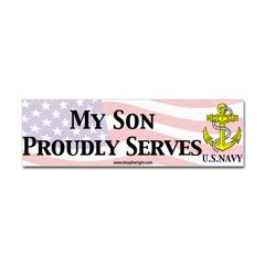 US Navy Son Bumper StickerProduct DetailsTell the world how you feel! Our bumper stickers are perfect for expressing yourself while cruising down the highway or just for posting on the wall.