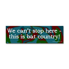 We can't stop here this is bat countryFrom the Designer Tell the world how you feel! Our bumper stickers are perfect for expressing yourself while cruising down the highway or just for posting on the wall.