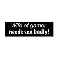 Wife of gamer needs sex badly bumperstickerProduct DetailsTell the world how you feel! Our bumper stickers are perfect for expressing yourself while cruising down the highway or just for posting on the wall.